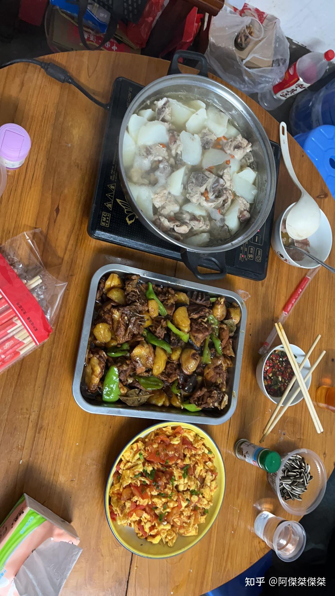 而我家最常的是猪肉,肉沫炖蛋,红烧猪蹄,排骨汤等。