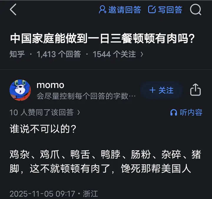唉,咱也不知道高学历高认知的知乎er是怎么混到连个肉都吃不起的。